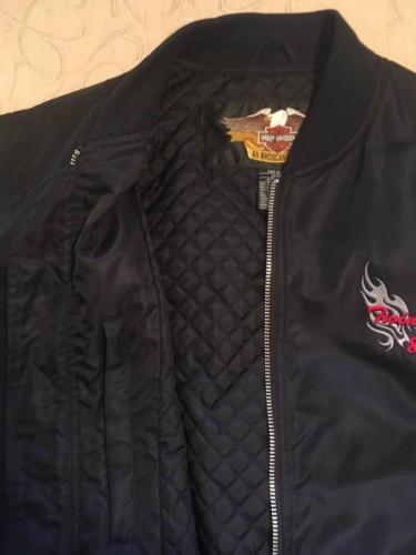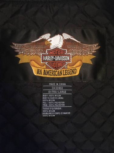 Nice lighter weight jacket. Great for layering in winter, spring, and fall. Extra Large zip up nylon jacket, quilted inside. The color is black. Outside pockets snap close, an inside zippered pocket and zippered pocket on sleeve. Twin Cam 88 Emblem with flames on front and back. This jacket has not been worn ...