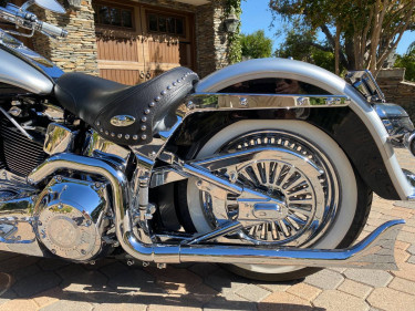 2003 heritage softail 100 anniversary with 6500 original miles only dealer serviced with no accidents 2nd place winner in bike show everything is new must be seen in person to appreciate comes with lots of extras inc 2 helmets 3 seats 21" and 16" fat daddy rims, saddle bags, windshield, bike cover, have al...