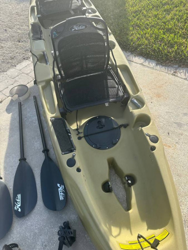 Hobie Mirage outfitter Tandem Kayak with accessories Price includes the following items: - 2 HOBIE Vantage seats - 2 Mirage drives - V2 - dual Rudder controls - 2 fiberglass hobie paddles - tackle box - adjustable wheel cart - 4 rod holders Lightly used. everything is fully functional. L...