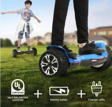 Gyroor Warrior 8.5 inch All Terrain Off Road Hoverboard with Bluetooth Speakers and LED Lights, UL2272 Certified Self Balancing ScooterSUPER STURDY & DURABLE – The Warrior 8.5 inch Off Road Hoverboard is made from a perfect combination of UL approved materials which make up its sturdy structure that guara...