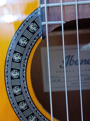 Beautiful Ibanez 3/4 size classical guitar with amber high gloss finish. The size is very comfortable to play especially with the 22.8" scale and nylon strings. A thinner nut than most classical guitars adds to the comfort and super playability. Spruce top and meranti back and sides with maple bridge give thi...