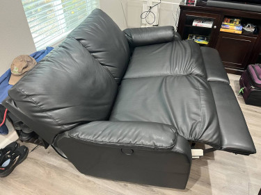 IKEA TOMBÄCK - Sofa with powered adjustable seat/back, Kimstad black. Electronic two halves independently controlled. Black leather in excellent condition. We are moving and need to let this go. You pick up, cash or Venmo only. The backs come off and the two seats can be separated for easier moving. Recline...