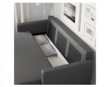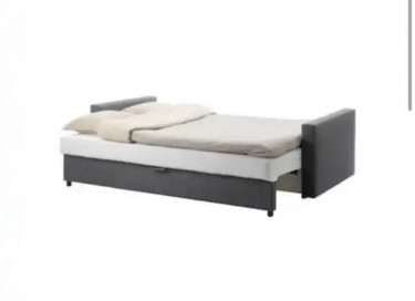 FRIHETEN Sleeper sofa in black leather-like fixed cover. Excellent condition. House with pets. After a good night’s sleep, you can effortlessly convert your bedroom or guest room into a living room again. The built-in storage is easy to access and spacious enough to store bedding, books and PJs.