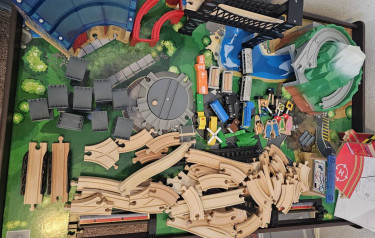 Purchased in December for Christmas, and it was hardly used. I believe it is only missing some of the people and the back part to the truck. I included other pieces from a different train set we have. The instruction manual is included. I'm asking 100 obo.