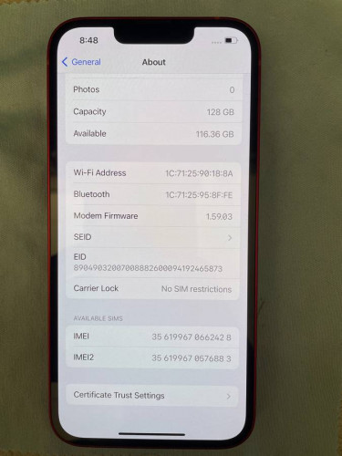 Unlocked iPhone 13 128GB in mint condition, battery health is 100%, no scratch on either screen or back. All original, lighting cable include.