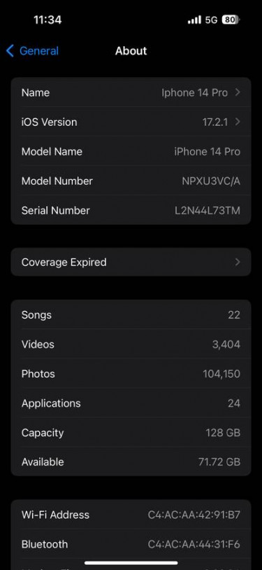 Selling my iPhone 14 Pro in space black. 128GB. In great condition. Has had a screen protector on from day 1. So no scratches at all! Battery health 89%. I will NOT respond to lowballs.