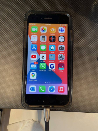 Screen is as-new, no scratches or blemishes, includes silicone case. Fully functional, battery is still strong and camera takes great photos. 4.7 inches; 64 gigabytes