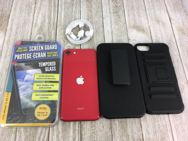 In very nice condition and ready for your AT&T sim card (Cricket Straight Talk, Net 10, or any AT&T subsidiary network), this second-gen Product Red iPhone SE has 64 gigs of storage. Includes brand new charging cord, protective case with holster, and a tempered glass screen protector! Great Phon...