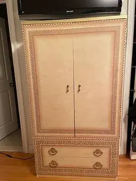 wood 6 items 4 doors wardrobe, chest, dressing table, bed and two bedside tables