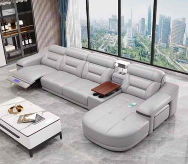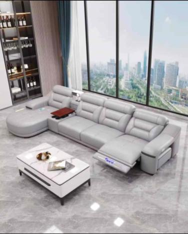 Italian Genuine Leather Sectional Sofa Set With Electric Recliner, Bluetooth Speaker and Projector by MANBAS