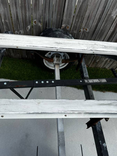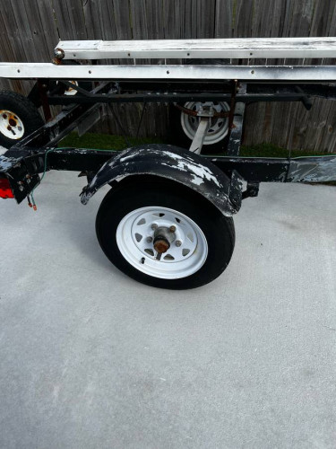 Jet ski trailer , has new wheels new axel and hubs . New trailer lights . And the bunks high and covered with pvc for easy sliding. I can’t find the registration so have to have to register it as home made .