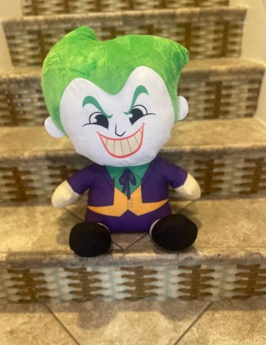 Appearance: The plush has the Joker's signature green hair, pale skin, and wide smile. He is wearing his classic purple suit with an orange vest.