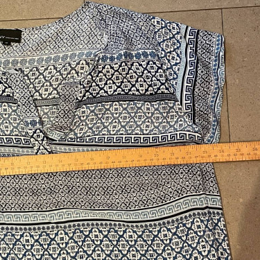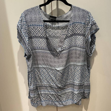Selling a pristine Jones New York loose V-neck summer top with cool bohemian print. Size 1x. This is a light swingy rayon. Blue and White. Pit to pit is 23". Asking $20. Available for pick up in the Broadview/Danforth area. Contact-free porch pick up. Check out my other great stuff by clicking on "mor...