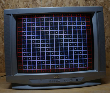 This is a silver, curved screen JVC CRT. Model number is AV-27D305. It is about 70 lbs. These JVC tvs are considered the alternative to the Sony Trinitron for retro gaming. Their strength is having curved glass tvs (so more dependable geometry) and having a component input, which is a rare combination. It ...