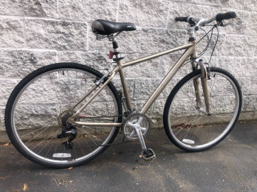 K2 21-speed hybrid commuter sport bike in nice condition .. Tuned up today .. Ready to ride!!! Tuned up today by a bike mechanic .. Ready to ride, no repairs or adjustments needed 700c wheels and 19" frame w/ suspension seat post which fits most riders 5'6" to 5'10" .. Medium 21-speeds Aluminum fr...