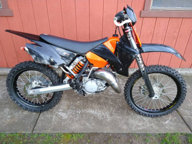 2003 KTM 125sx Dick's racing lowered 1" suspension less than 15 hours, blk powder coated frame,blk wheels, new reeds,runs great Langston exhaust,skid plate, new dirt digger clutch discs, newer brakes, tires, bars grips original plastic, two seats, FMF silencer. Trade for Sur ron e bike? Key words: KTM, ...