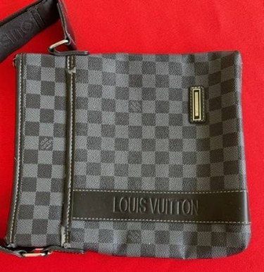 For your consideration this is a pre-owned black and grey sling bag. We have not used the brand name of the bag, because it was received as a gift, for our daughter, and she/we seriously doubt its authenticity. It has a few spots on the black vinyl trim with some slight peeling of the material. For what it...