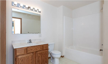 Large 3 bedroom with heat, water, sewer and garbage included. A.C., dishwasher , W & D. deck in a secure building with garage also. $950.00. Text us at