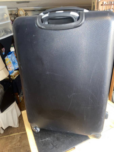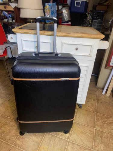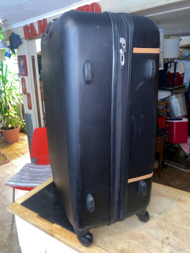 This is a terrific made Samsonite Brand Large size travel luggage bag. It's a 4 wheel spinner any direction Hard case travel bag with pull out handle. It glides great on floor and overall in excellent condition. There is minor scuffs on it because it's black the white scuff marks show a little more but th...