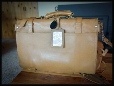 Beautiful, one-of-a-kind, leather hand-crafted satchel. It has leather left and right-side water bottle holders. There are plenty of leather pockets for pens and spaces for other items. Leather inside dividers. 100% top-grain leather. All fasteners, buckles, and rings are polished stainless steel. It has n...