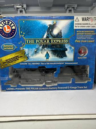 Hi. I'm selling my Lionel G-Gauge Polar Express Train Set With Remote control. In like new condition. Only used for about a week. In perfect condition. This is an ultra-rare train set complete with a large oval track, engine with headlamp beam, coal carrier (where batteries are stored) two carriages (one with...