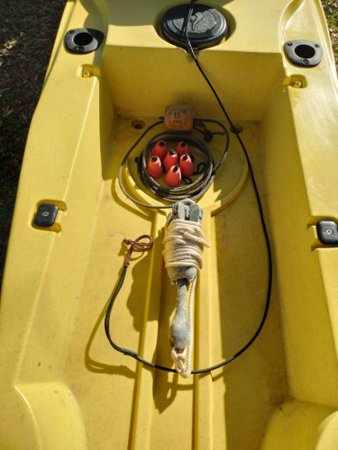 Great condition Manta Ray 14 kayak ready to fish... or just explore. Comes with: Carlisle Magic Plus paddle, 3 rod holders, Magellan life vest, anchor, 6 scupper plugs, paddle tether and fish stringer. All you'll need is a fishin' pole and a license and you should be set. Not sure of the age but I've included...