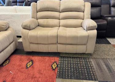Brand new plush reclining set in a soft beige microfiber. Super soft and comfortable with smooth reclining on every piece. Neutral color that fits with any style