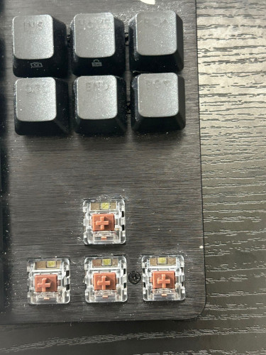 Really good keyboard has brown switches it sound amazing It has 5 different lighting modes got this with a pc I bought don’t really use it so it’s a bit dusty but it can be cleaned. Pretty good keyboard overall.