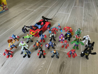 Lot of 25 Imaginext & Playskool Heros Figures plus Spider-Man Arachno Racer The Arachno Racer has buttons that release the claw and expose the wings and turbines. Reduced!!! $25 407 Six 87-6013 Call or Text Will not ship. Local pickup only. zxc