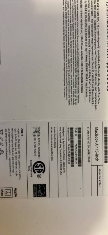 Macbook air 15” M2 8gb/256gb