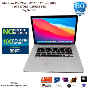 MacBook Pro (Retina, 15-inch, Late 2013) “H91106” • Model: A1398 • Processor: Intel(r) Core i7 (I7-4850HQ) • CPU Speed: 2.3 GHz • Storage: 256GB SSD • RAM: 16GB DDR3 • Cell Revision: 693 • Graphics: Intel Iris Pro • Serial Number: C02LR1P0FD58 • OS: mac Monterey 11.7.7 • Screen Size: 15" • Pow...