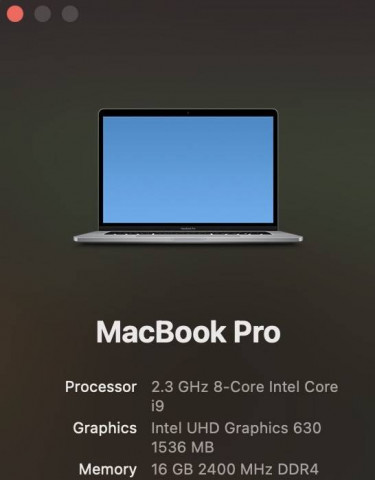MacBook Pro i9 2.3GHz 8 Core 15" (Mid 2019) 512GB SSD 16GB Ram Fully Tested and Functional MacBook Pro Condition 8/10 NOTE: Computer is in excellent condition, runs flawlessly. Has some minor scratches NOTE: No Charger Included Color: Space Gray Release Year: Mid 2019 Display: Retina display...