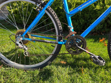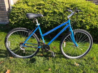 For Sale: READY TO RIDE! 26 inch Women's/Step Thru Magna Glacier Point - 15 Speed - Blue. -Pedals, Seat and Grips all in Great Condition -The Shift and Brake Cables are not seized and are moving freely -The bike has been cleaned, tuned up, and is ready to ride! Asking: $45.00 Pick up in Traverse Ci...