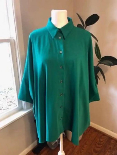 100% polyester Women’s size Medium Excellent condition- worn 3 times. $600 retail This is a luxury brand designed in Paris and made in Italy. This elegant top is a deeper green color than it appears in the photos. Has silver colored accent buttons and still has the extra one on the tag. Get...