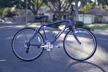 Marin Larkspur Hybrid in blue. Frame is aluminum and sized LARGE 20.5", and would fit someone about 5'8" and up (depending on proportions). This bike has been inspected, tuned, and test ridden by a professional bicycle mechanic. Everything works from top to bottom, front to back. It's ready to ride! ...