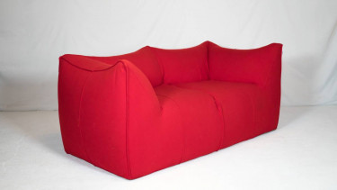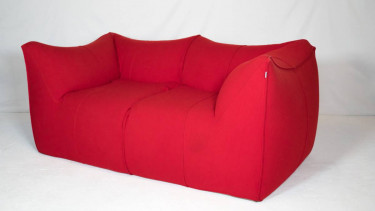 'Le Bambole' sofa designed by Mario Bellini for B&B Italia, circa 1990s. Wrapped in thick original red wool upholstery. Le Bambole envisaged a “fabric containing a soft body” with naturalness of shape and form. Playful informality with functional comfort, the cushions are covered in an anonymous truck tar...