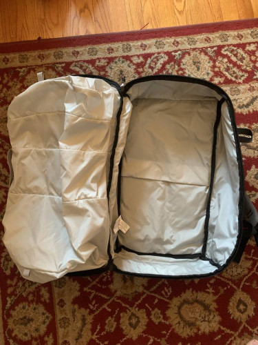 Cool medium-sized 28L travel backpack from Matador. The bag has a unique organizational system where you can either pack it wide open like a normal suitcase-style travel backpack, or use the four front zippers to access/pack the main compartment space in a segmented way (or both). Also has a water bottle pock...