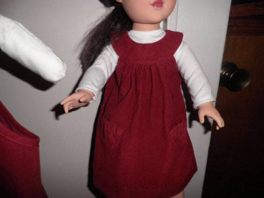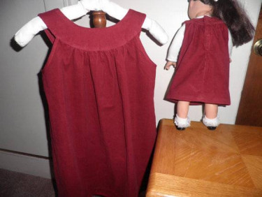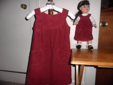 You and your little one will love these NEW red corduroy jumpers with cute pockets! Girl's jumper is made to fit size 4-5, chest size 24-25. Measures 28 inches around chest to allow for roomy fit with a blouse or sweater underneath. It is 25 inches from top to bottom. Hem is hand sewn and edged with hem ...