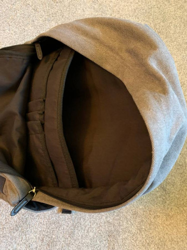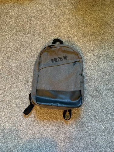 New without tags Matco Tools small backpack. 100% cotton, vintage gray, padded back and straps, 1 zip front pocket, 1 side pocket, padded laptop pocket, inner organizer pocket, top handle, faux leather trim on front. 18" x 12" x 4". $14 text 330-317-3176