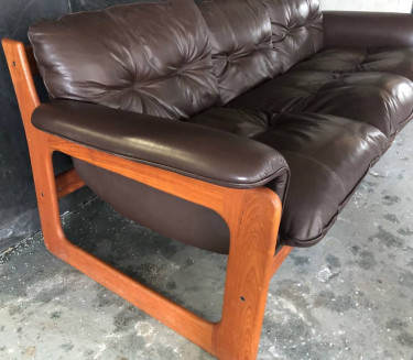 Full grain leather chocolate set of sofa and lounge chair in mint condition with absolutely no defects. Removable cushions, withiut any wear, discoloration, burns, stains, rips, cracks, nothing missing or any imaginable defects, solid and original unrestored but factory clean from smoke and pet free home. It...