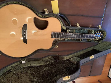 This is in immaculate McPherson acoustic guitar. It’s a 4.5 Indian Rosewood/Adirondack, with the custom-built Baggs pickup. Perfect for any style, and an absolute pleasure to play.