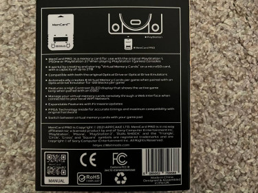 The only memory card your PS1 will ever need and they are $55 each. Getting rid of my gaming stuff as I don't really play anymore. https://web.archive.org/web/20220410214425/https://8bitmods.com/memcard-pro-for-playstation-1-smoke-black/ tags: PS1, Playstation, PSX, PSone, Playstation 2, Sony, PS2