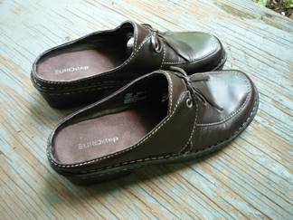 These are all $8 each: the Eurostep slip-ons are 10M; the Gander Mountain loafers seem to be in the size 10 range; the Nike Hightops are size 10; the CosmoPedic zip-ups are smaller, probably around 8 or so. The Cuddlers are officially size 11M, but run smaller, so they're actually more like size 9 - ...