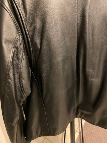 Men's Wilson Black Leather Jacket Size Large This jacket was purchased in Wilson's Leather Store. It is in like Brand New Condition. It was worn a couple of times. Jacket has two inside pockets Measurements Armpit To Armpit - 24 Inches Top of The Collar To Bottom of the Jacket - 28 Inches 100% Leather Aski...