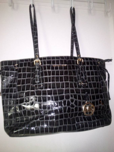 I have a lovely Michael kors handbag this purse is super nice it's black it has the insignia on the front it has a zipper closure on the top and a zip up pocket on the inside and several other pockets it is super nice to straps to carry it measures approximately 10 in by 15 in I have more of Michael kors purs...