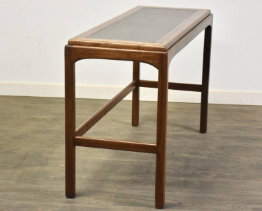 A mid century modern walnut sofa table with a scratch resistant formica top. A great console table or entryway table. 47.5” wide. 18” deep. 29” tall. Delivery for hire. Appointment only.