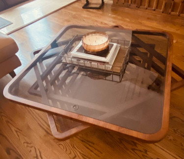 We bought this table recently for our living area; unfortunately, the table is a bit too big for the intended space. We paid $1000 including fees & shipping; the listed price reflects a discount. However, feel free to make us an offer!! Sad to have to sell as it has a very unique design; built well...