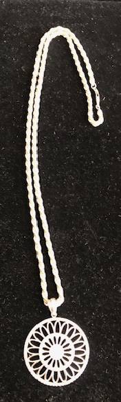 Milor Sterling Silver Heavy Solid Rope Chain with Sterling Pendant; Lobster claw clasp; 925 Milor Italy. Good condition. Length: ~ 16” total 2” diameter round flower design pendant Price: $125 CASH ONLY Please click on the 'more ads by this user' link to see other items I am selling.
