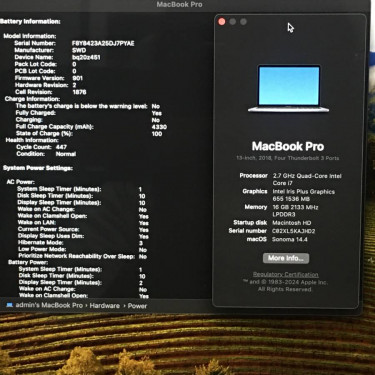 Up for sale is my meticulously cared-for 2018 MacBook Pro 13". This laptop has been a trusted companion for both my professional and personal use, and it's in mint condition. I'm selling it because I've upgraded to a newer model, but this one still runs like a dream. Key Features: Model: MacBook Pro (13...