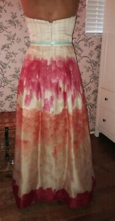 This is a gently worn (once), evening gown for sale. It has been dry cleaned, is in mint, perfect condition, and is ready to be worn. The designer is KAY UNGER and this dress retails at $750 at high end department stores. It is fitted throughout the bust and waist and then flows into a subtle A-line...